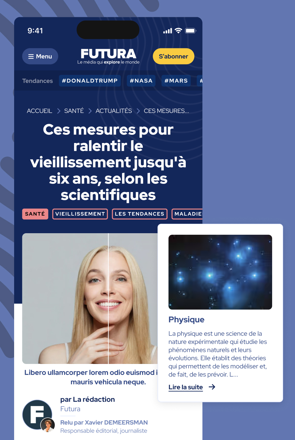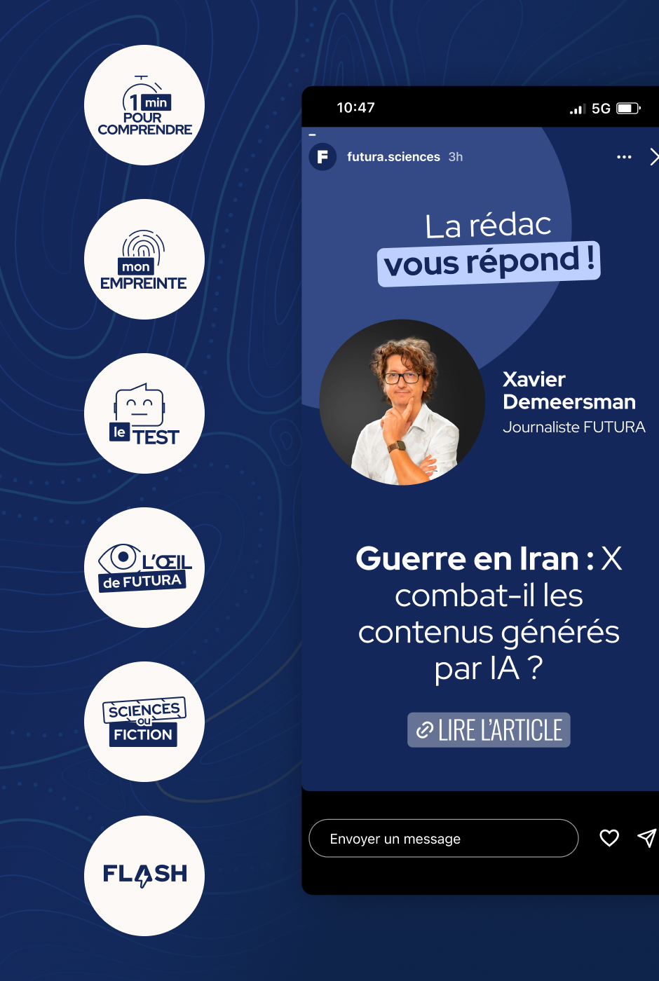 Futura est le premier média français de vulgarisation scientifique sur le web, fondé en 2001. Il décrypte les découvertes et innovations qui changent le monde à travers des rubriques Sciences, Santé, Tech, Planète, Maison, Conso, Formation et Automobile.
