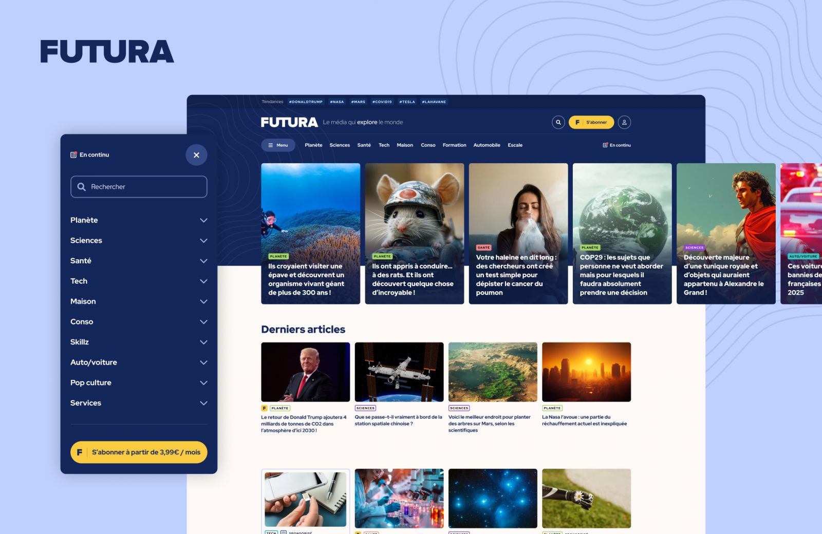 Dans le cadre de la refonte du site de Futura, plusieurs problématiques spécifiques devaient être prises en compte pour améliorer l’expérience utilisateur tout en respectant l’identité éditoriale forte.